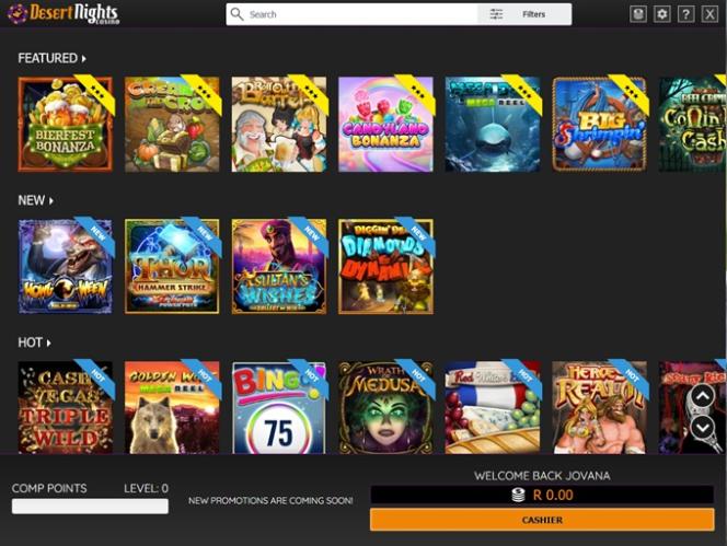 بالإضافة إلى ماكينات القمار وألعاب الطاولة وألعاب الفيديو بوكر، تقدم Desert Nights ألعاب الكينو وبطاقات الخدش لعملائها.