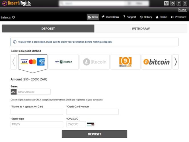 خيارات الخدمات المصرفية في Desert Nights Rival Casino