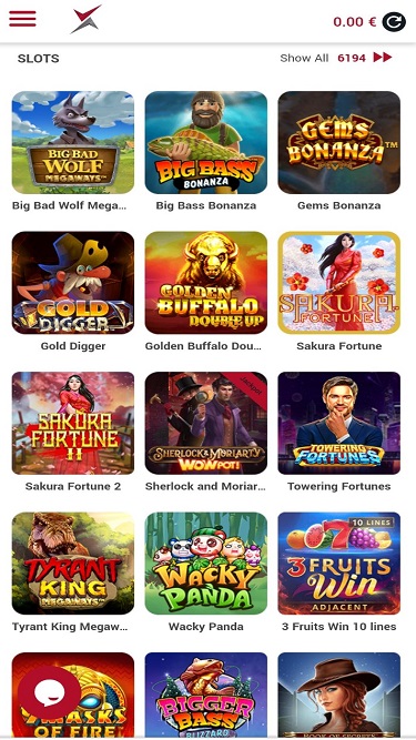 الفتحات : 9 تنانين مشتعلة، 9 نجوم مشتعلة، Big Bad Wolf Megaways، Big Bass Bonanza، Book of Gold Multichance، Buffalo Power Christmas، Diamond Fortunator، Power Of Gods Valhalla، Sakura Fortune II، Sherlock & Moriarty WOWPOT، Sizzling Kingdom، Bison، Tyrant King Megaways، 3 Fruits Win 10 lines، 9 Masks of Fire، Book of Secrets، Carnival Queen، Cheeky Fruits 6 Deluxe، Eastern Gold Deluxe، Gems Bonanza، Gold Digger، Golden Buffalo Double Up، Hot Spin، Indi، Lucky Lions Wild Life، Money Farm، Nefertiti's Nile، Piggy Bjorn 2 Winter is Coming، Psycho Candy، Sakura Fortune، Sisters of Oz Jackpots، Super 15 stars، Sweet Powernudge، The Good, The Bad and the Ugly، Wacky Panda، Wanted Dead or a Wild. ثروات زيلدار، 100 ألف جوكر، 40 فاكهة حارة مشتعلة، 88 ثروة، 9 أواني من الذهب، طرق الخيمياء، بار الموز...