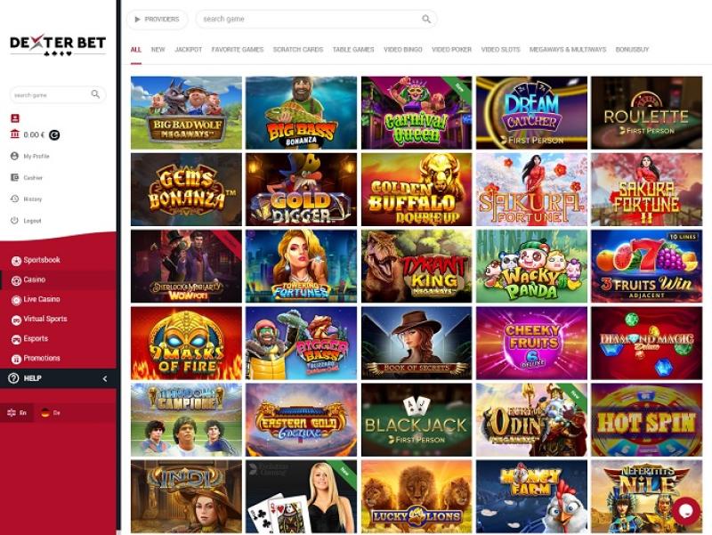 يقدم Dexterbet مكتبة ألعاب ضخمة مدعومة من قبل عمالقة الصناعة ومطوري برامج الكازينو الصغيرة عبر الإنترنت، مما يمنح المقامرين فرصة لتجربة بعض من أفضل الألعاب الموجودة هناك ، والألعاب الكلاسيكية الشهيرة في الكازينو عبر الإنترنت، ولكن أيضًا العديد من الإصدارات الجديدة والمبتكرة.