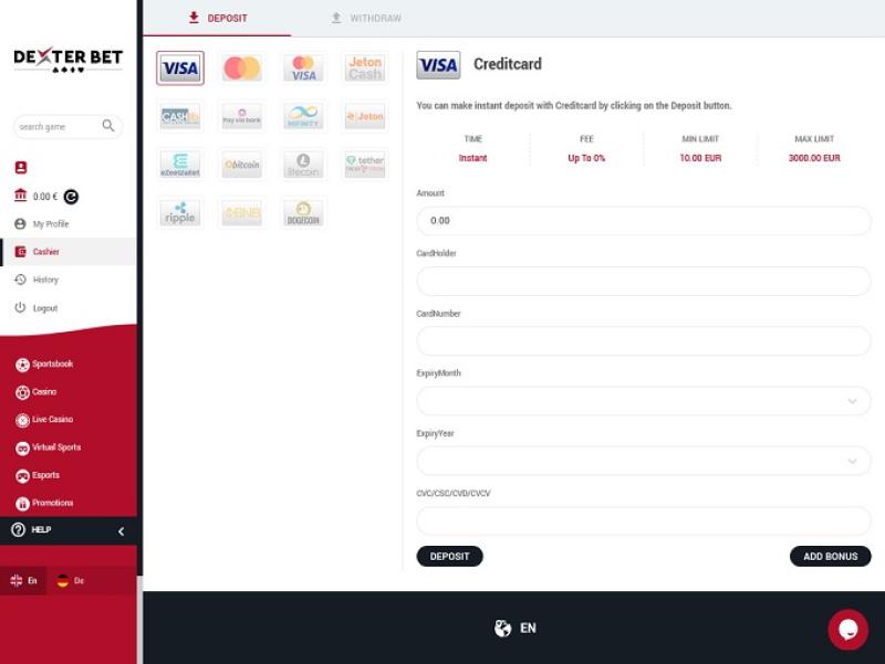 خيارات الخدمات المصرفية في Dexterbet Casino