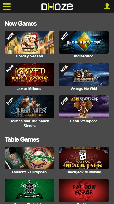 كازينو دوزي مُشغّل بواسطة Microgaming, Net Entertainment, ELK Studios, Genesis Gaming, Play'n GO, Quickspin, Rabcat, Thunderkick, Yggdrasil, Games Global, Ash Gaming, Blueprint Gaming, Leander Games and NextGen ، مما يُتيح للكازينو مجموعة واسعة من الألعاب. يُمكن الوصول إلى الموقع عبر موقعه الإلكتروني، كما يُمكن اللعب عليه عبر الأجهزة المحمولة.خيارات الخدمات المصرفية في Dhoze