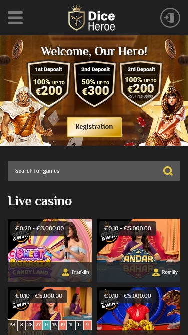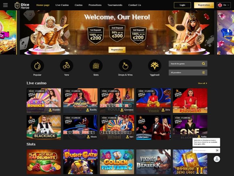تستحق هذه المجموعة الكبيرة من الألعاب منصة كازينو متكاملة الوظائف بتصميم رائع، وهو ما يقدمه كازينو DiceHeroe لزواره وأعضائه المسجلين. يتميز تصميمه بالبساطة، مما يتيح مساحة واسعة للألعاب لتبرز بشكل مميز.