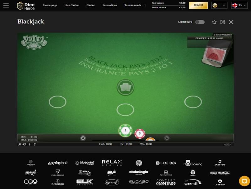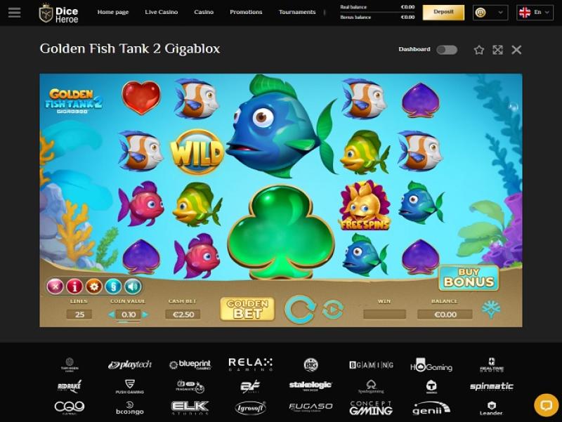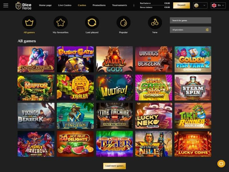 كما ذكرنا سابقًا، تمتلك DiceHeroe مكتبة ألعاب كبيرة مقدمة من قائمة طويلة من موردي الألعاب المعروفين مثل: Yggdrasil وRelax Gaming و Spinomenal والمزيد.