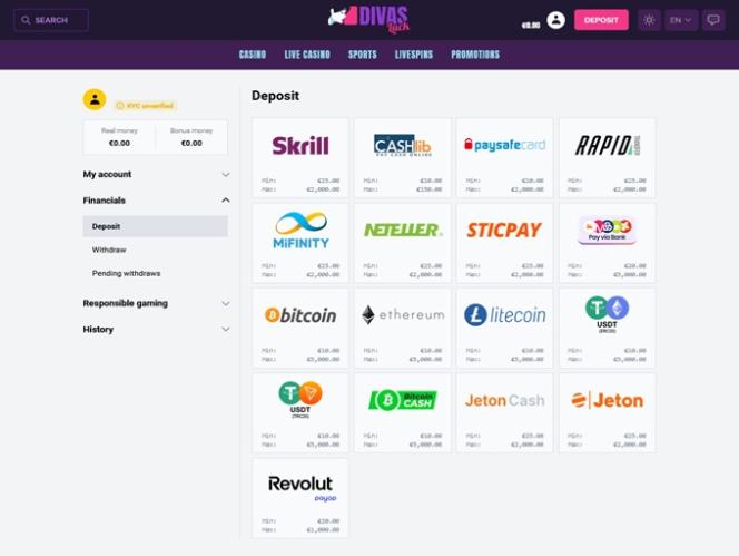 خيارات الخدمات المصرفية في Divas Luck Casino