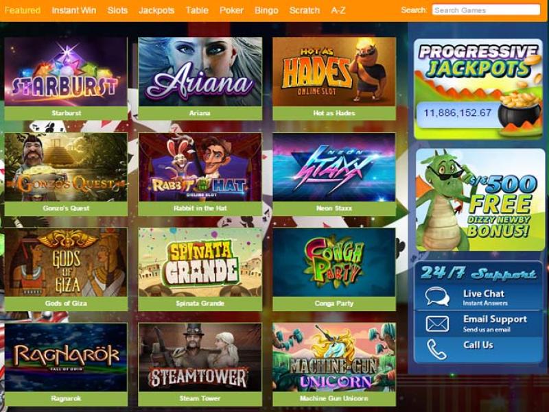تتوفر العديد من ألعاب السلوتس للعب في DizzyWin، مع مئات من ألعاب الفيديو، بالإضافة إلى مجموعة واسعة من ألعاب السلوتس الكلاسيكية. كما يقدم الكازينو العديد من الجوائز الكبرى التراكمية، حيث يقدم جوائز بملايين الدولارات في أي وقت.برنامج نقاط المنافسة