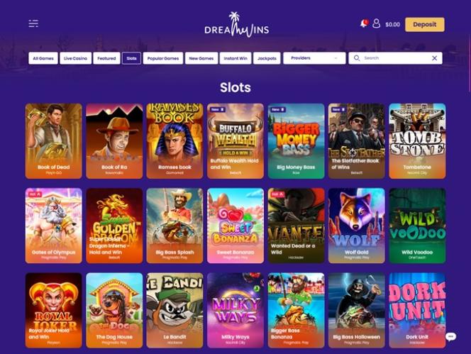 يقدم DreamWins للاعبين مجموعة جذابة من ألعاب السلوتس، مليئة بألعاب ذات سمات شائعة، وحلول تصميم صوت واقعية، ورسومات متطورة، وغيرها الكثير. كما تُبقي ميزات المكافآت المذهلة، مثل الدورات والجولات الإضافية، والمضاعفات، والرموز البرية، وغيرها من الخيارات الشيقة، اللاعبين مستمتعين ومتفاعلين.