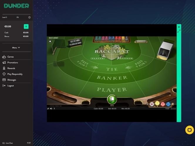 بالإضافة إلى ألعاب الكازينو القياسية، يقدم كازينو Dunder أيضًا للاعبيه مجموعة كاملة من ألعاب الموزع المباشر، والتي تتضمن البلاك جاك، والروليت، والبكارات، وثلاث بطاقات بوكر، والمزيد.