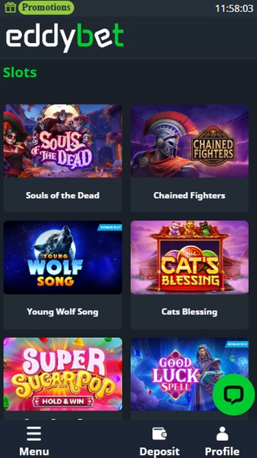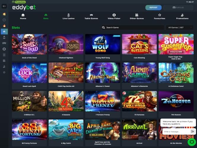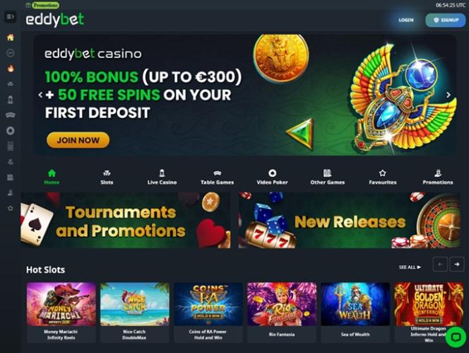 يُدرك كازينو EddyBet أن هذا ما يريده الجميع، ولذلك قدّم مجموعة ألعاب مُصمّمة بعناية، تضمّ ألعاب كازينو متنوعة، ليجد كل لاعب ما يُناسب ذوقه. هناك تشكيلة واسعة من أنواع الألعاب المُختلفة للاختيار من بينها.