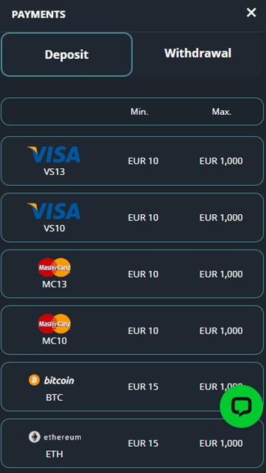 من أهم ميزات هذه العلامة التجارية أنها تتيح للاعبين استخدام خيارات الدفع التقليدية والحديثة. ويمكن للراغبين في استخدام بطاقات الائتمان والخصم القيام بذلك دون أي مشاكل. كما يمكن للاعبين إيداع وسحب أموالهم باستخدام مختلف العملات المشفرة، مما يتيح لهم معاملات أكثر أمانًا وسرعة.