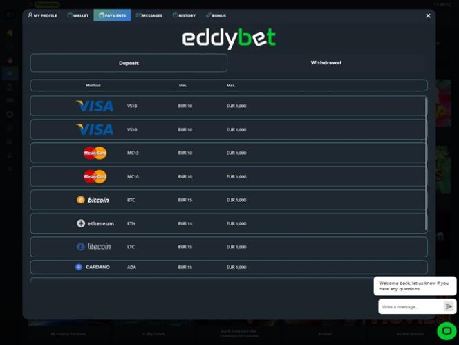 بينما ينتظر اللاعبون برنامج الولاء، قرر كازينو EddyBet تزويد لاعبيه بمواد ترويجية قيّمة مع العديد من العروض والمكافآت لإضفاء المزيد من المتعة. بمجرد إنشاء حسابك، احصل على مكافأة الترحيب، وهي عرض ترويجي لمطابقة الإيداع مصمم لبدء جلستك الأولى براحة بال.