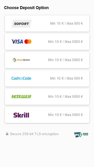 يدعم الكازينو طرق دفع موثوقة يستخدمها اللاعبون على نطاق واسع. يمكن تمويل الحسابات وسحب الأرباح نقدًا باستخدام بطاقات الدفع والمحافظ الإلكترونية والتحويلات المصرفية المباشرة.
