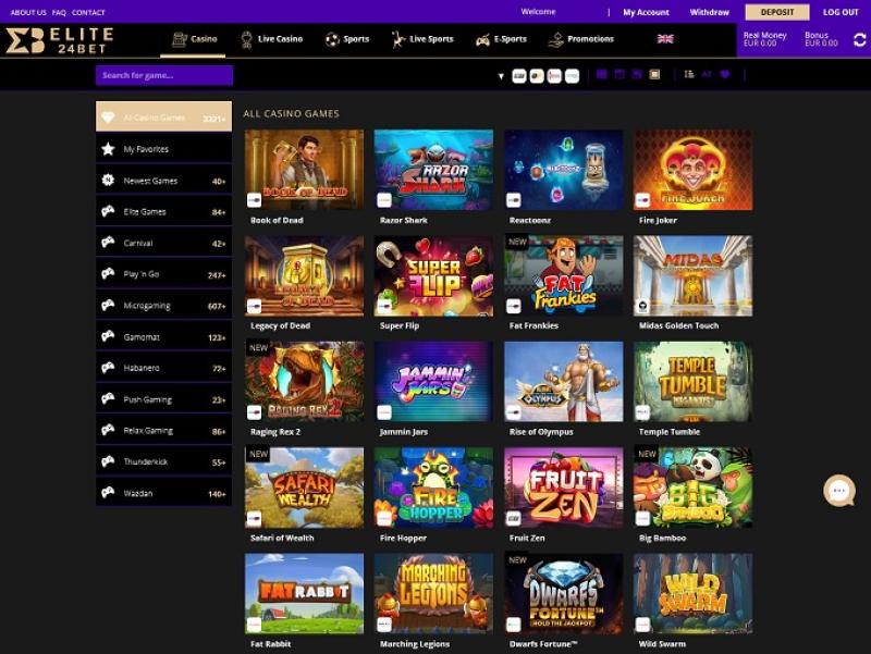 ستجد في Elite24Bet تشكيلة مذهلة من عناوين ماكينات القمار الشهيرة والمعروفة مثل: Book of Dead، John Hunter and the Book of Tut، Reactoonz، Big Bass Bonanza، Rise of Olympus، The Dog House، Legacy of Dead، Super Flip، Rainbow Gold، Fat Frankies، Midas Golden Touch، Queenie، Raging Rex 2، Safari of Wealth، Fruit Zen، Wild Beach Party، Sakura Fortune، Tales of Dr. Doolittle، Ramses Book، Fire Joker، The Sword and The Grail، Books & Bulls، Hammer of Vulcan، Fancy Fruits، Big Bad Wolf، Eastern Emeralds، Ramses Book Respins of Amun Re، Book of Juno، Majestic Winter، The Dragon Castle، Royal Seven XXL، Million Dracula، Take 5، Lucky Jack - Lost Jungle، Queen of Embers، Sticky Diamonds، Barbarians Gold، Orient Train، Crystal Ball، Reel Fruits، Reactoonz 2، لا دولتشي فيتا، كتاب لوكي، كتاب ألف ليلة وليلة، سوبر سفن، أخوات الشمس، حكايات غربية، لاكي كلوفرلاند، فيديو بينجو الموتى، مجموعة البيرة 40 سطرًا، زولو جولد، يوم محظوظ: أبطال تشيلتنهام، الفلفل المكسيكي، بينجو كالافيرا، بينجو الطماطم، دكتور تونز، ألبيني العظيم 2، جاء من فينوس، هتافات أيرلندية، بيج باد وولف ميجاوايز، أموال منتصف الليل...برنامج نقاط المنافسة