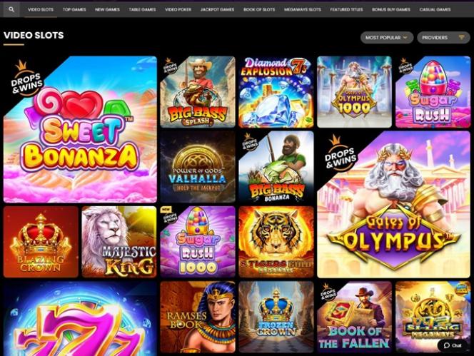 للتنقل بسرعة إلى جميع فئات الألعاب والفئات الفرعية، يتميز الكازينو بقائمة أفقية في الجزء العلوي من الصفحة الرئيسية، حيث يمكنك الوصول بسرعة إلى جميع خيارات الترفيه المتاحة، بما في ذلك صفحة منفصلة مخصصة للعروض الترويجية والمكافآت التي يمكنك المطالبة بها.