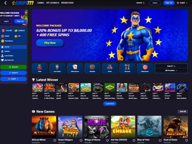 كازينو Europa777 هو كازينو على الإنترنت مملوك لعلامة تجارية متخصصة في ألعاب الإنترنت، ومسجل بموجب قوانين كوراساو. وهو مرخص ومنظم من قِبل Antillephone ، ويستهدف بشكل رئيسي اللاعبين المقيمين في الدول الأوروبية.