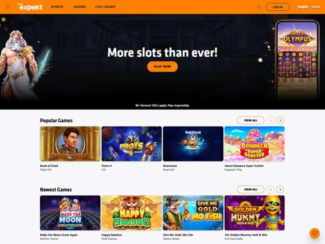بالإضافة إلى ألعاب الكازينو القياسية، يقدم كازينو Expekt منصة كاملة للموزع المباشر، وقسم الرهان الرياضي، وغرفة البوكر للاعبين.