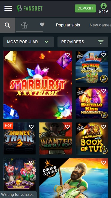 تحتوي مكتبة FansBet على ألعاب سلوتس مليئة بأفضل الألعاب التي يحبها الجميع: Starburst XXXtreme، Sweet Bonanza Xmas، Gonzo's Quest، Buffalo Rising MEGAWAYS، Starburst، Big Bass Bonanza، Bigger Bass Bonanza، Dragon's Fire MegaWays، The Goonies، Fruit Party، The Dog House، Gates of Olympus™، TED Megaways، Rick and Morty Megaways، Twin Spin 117649 Megaways، John Hunter and the Quest of Bermuda Riches، Return of Kong Megaways، Dead or Alive 2™ Feature Buy، Vikings Unleashed MEGAWAYS، Finn's Golden Tavern، Jack and the Beanstalk، Buffalo King Megaways، Pirates Plenty Battle for Gold، Diamond Mine Extra Gold Big Bet، Piggy Riches Megaways، John Hunter and the Book of Tut، Book of Fallen، Mercy of the Gods، Vegas Night Life، Imperial الثروات، الحظ الإلهي، الجوكر العملاق، جراند سبين سوبربوت، الجائزة الكبرى 6000، أحجار كريمة أزتيك، ديسكو داني، العجلة الكبرى، جراند سبين سوبربوت، الماس الزمردي، الماس الأحمر، النرد النرد النرد...برنامج نقاط المنافسة