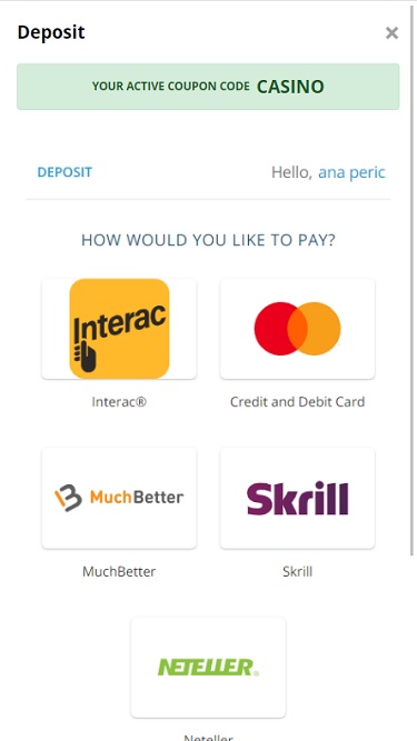 تشمل طرق الدفع المتاحة المحافظ الإلكترونية الشهيرة، والتي يستخدمها المقامرون عبر الإنترنت في كثير من الأحيان، وبطاقات الدفع، والتحويلات المصرفية القياسية، بالإضافة إلى خيارات الدفع بالعملات المشفرة.
