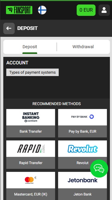 خيارات الخدمات المصرفية في Fansport Casino