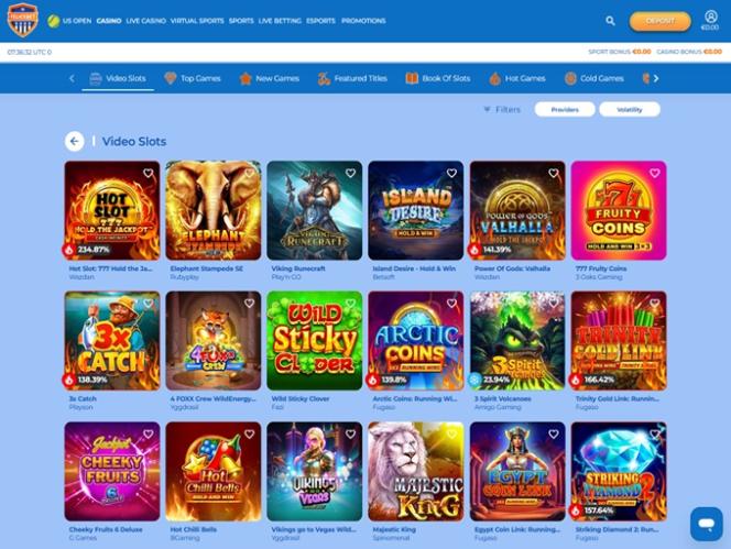 مكتبة الألعاب واسعة النطاق وتأتي مقسمة إلى قسمين كبيرين: الكازينو والرهان الرياضي ، ولكن المزيد عن ذلك لاحقًا!