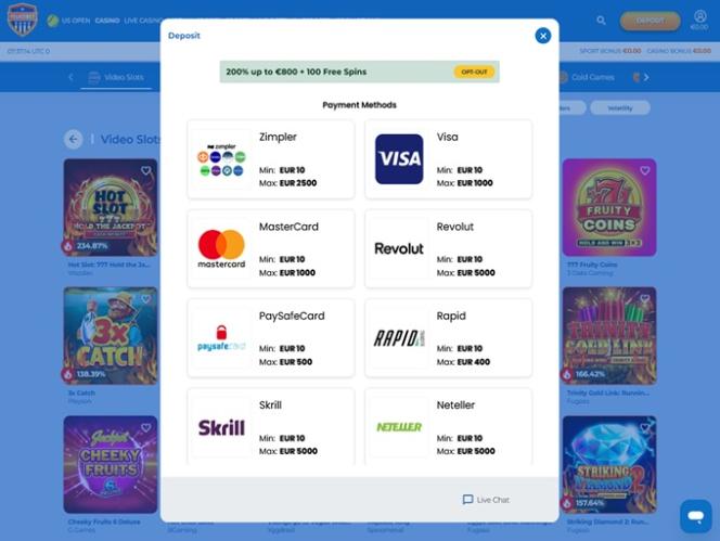 يقدم كازينو FeliceBet طرق دفع متنوعة مثل AstroPay و Skrill و Netteler و Visa و MasterCard على سبيل المثال لا الحصر، بالإضافة إلى العديد من خيارات التشفير مثل Bitcoin و Bitcoin Cash و Ethereum و Litecoin و Ripple و Tether و USD Coin.
