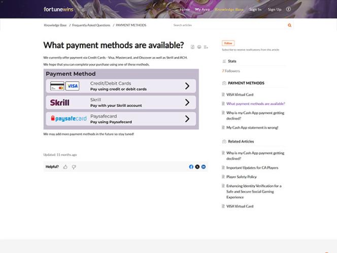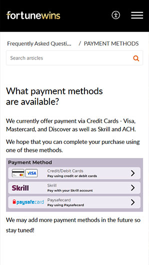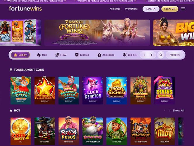 تأسس موقع Fortune Wins عام 2022، وهو موقع ألعاب مسابقات يتمتع بخبرة واسعة في هذا المجال، ويقدم تشكيلة واسعة من ألعاب الكازينو، بما في ذلك ماكينات القمار الإلكترونية، وألعاب الموزع المباشر، وألعاب القمار السريعة، بالإضافة إلى عروض ترويجية ومكافآت متنوعة. يقبل الموقع لاعبين من الولايات المتحدة وكندا، مع وجود قيود على بعض الولايات، مثل أيداهو، وميشيغان، ونيفادا، وواشنطن العاصمة، بالإضافة إلى مقاطعتي أونتاريو وكيبيك في كندا.