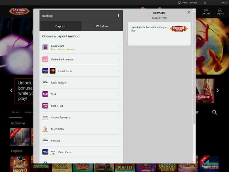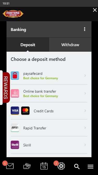 خيارات الخدمات المصرفية في Fortune Room Casino