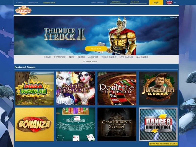 يقدم كازينو FreakyVegas مجموعة من ألعاب الفيديو والسلوتس الكلاسيكية، ويمكن لعبها على أجهزة الكمبيوتر والهواتف المحمولة. كما يقدم مجموعة من الجوائز الكبرى التراكمية، والتي تمنح جوائز نقدية كبيرة للعملاء. من بين الألعاب التي تقدم جوائز كبرى تراكمية: Cosmic Fortune، وArabian Nights، وSuper Lucky Frog، وTiki Wonders، وغيرها.برنامج نقاط المنافسة