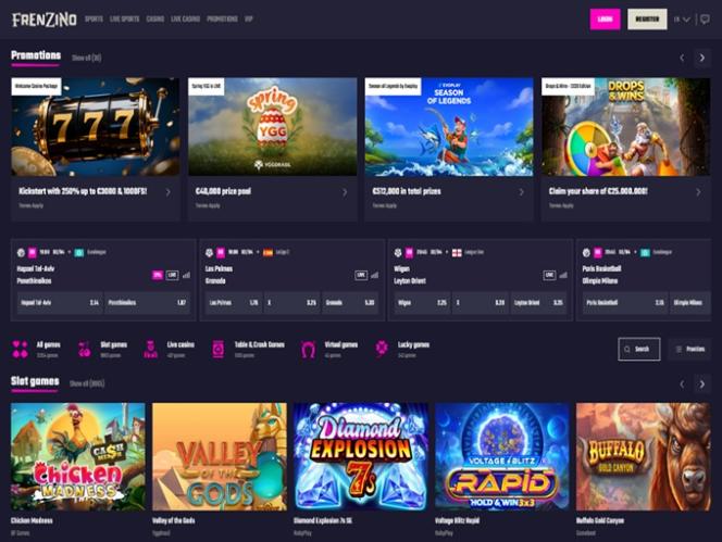 فرينزينو هو كازينو وموقع مراهنات رياضية على الإنترنت يدعم العملات الرقمية ، ويعمل بموجب ترخيص من شركة كاناواكي. يقدم آلاف ألعاب الكازينو مثل ماكينات القمار، وألعاب الطاولة مثل الباكارات والروليت والبلاك جاك، بالإضافة إلى ألعاب الكراش والألعاب الافتراضية.