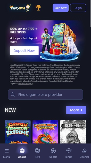 كازينو فروتي كينج هو موقع مراهنات إلكتروني، أُسس عام ٢٠١٤ بواسطة شركة بروغرس بلاي المحدودة. يُركز الكازينو على سوق ألعاب الهواتف المحمولة، مُقدمًا مجموعة متنوعة من الألعاب المُناسبة للشاشات الصغيرة للعملاء أثناء التنقل، مع دعمه لأجهزة الكمبيوتر المكتبية أيضًا.