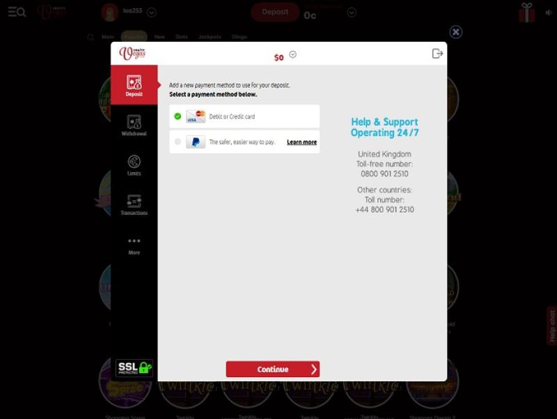 خيارات الخدمات المصرفية في Fruity Vegas Casino