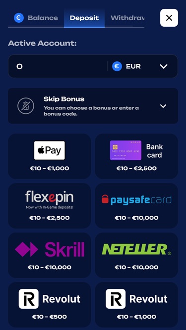 🤑 حد السحب النقدي€4,000 (Standard and Regular) Daily; €10,000 (Captain) Daily; No (Legend)
