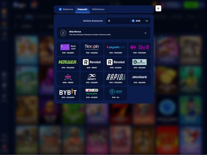 يقبل الكازينو العملات الورقية والعملات المشفرة على حد سواء.