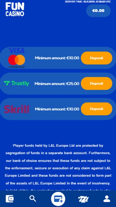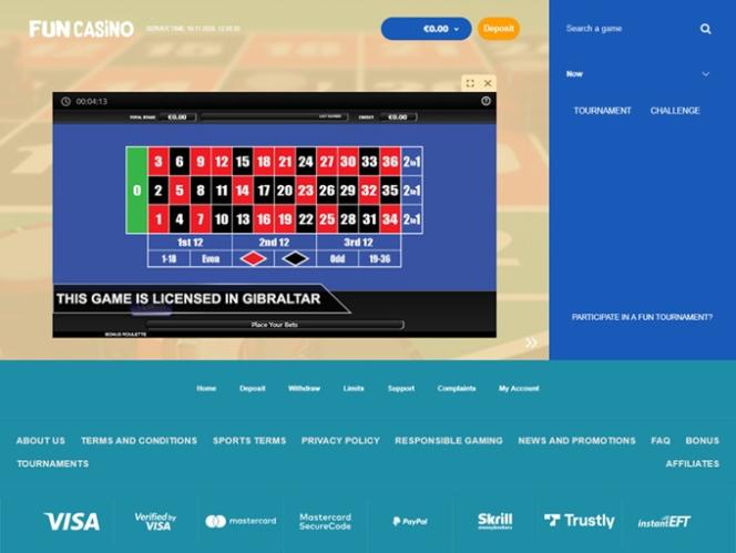 لا يبدو أن هناك برنامج تعويض في Fun Casino.