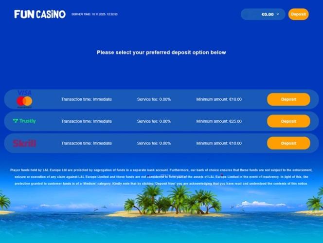 لا توجد حاليًا أي مشكلات معروفة تتعلق بكيفية إجراء Fun Casino لعمليات الألعاب الخاصة به.