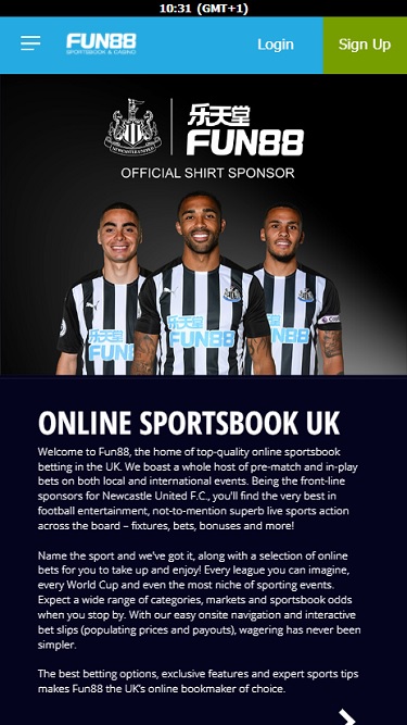 بالإضافة إلى ألعاب الكازينو القياسية، يقدم Fun88 قسمًا كاملاً للمراهنات الرياضية وتجربة كاملة مع الموزع المباشر.