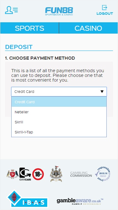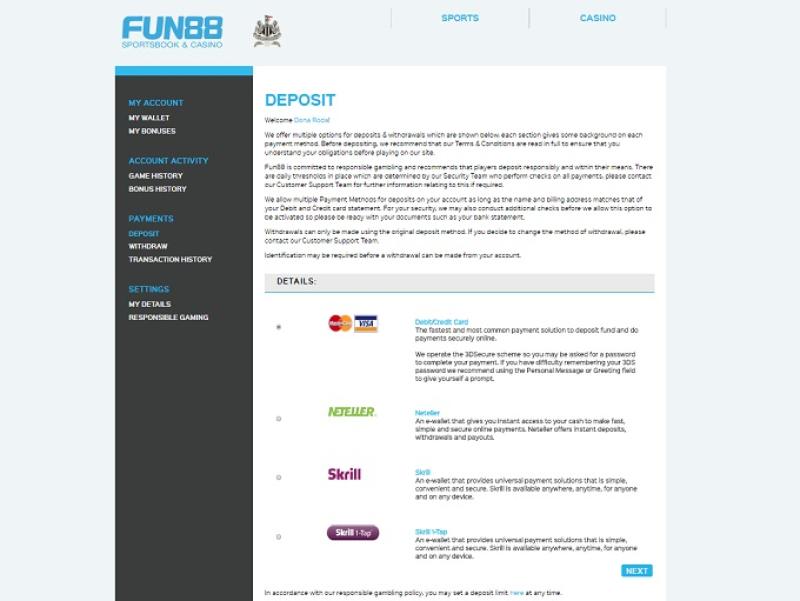 نظام Fun88 المصرفي جيد، حيث يمكنك الوصول إلى المحفظة الإلكترونية ومعاملات بطاقات الائتمان. سرعة الدفع جيدة، ويهدف الكازينو إلى الدفع خلال يوم واحد عند استخدام المحفظة الإلكترونية. يوجد حد سحب يومي قدره 5000 دولار أمريكي، مما قد يثني اللاعبين الكبار.