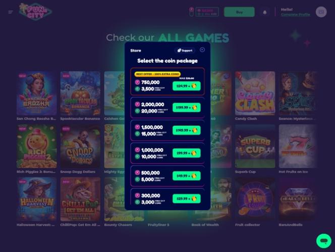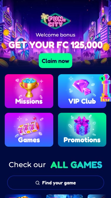 يحتاج كل كازينو اجتماعي إلى خطة ترويجية فعّالة لجذب جمهور واسع، وهذا ما فعله كازينو FunzCity تحديدًا. سيُكافأ كل حساب جديد بعملات Fun Coins وCity Coins، ليبدأ رحلته بحماس دون القلق بشأن الرصيد.
