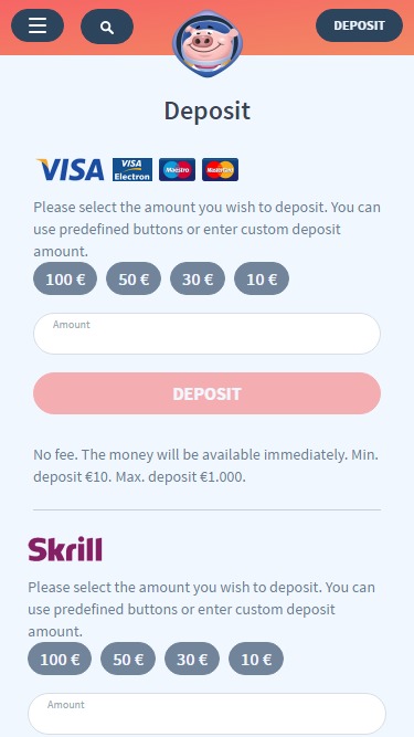 يتميز كازينو Galaxy Pig بالنظام المصرفي الجيد، حيث يقدم خدمات الإيداع والسحب عبر التحويل البنكي، وNeteller، وSkrill. كما يمكن الإيداع عبر Visa، وMastercard، وMaestro. تتراوح سرعة السحب بين 24 ساعة لـ Skrill، و3 أيام للتحويلات البنكية. كما يوجد حد سحب يومي قدره 5,000 يورو، وهو لا ينطبق على الجوائز الكبرى التراكمية.