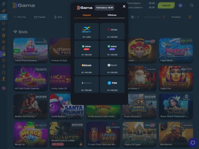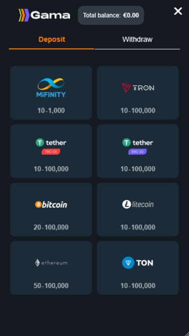 يُتيح كازينو جاما للاعبيه استخدام طرق الدفع الشائعة مثل فيزا ، وماستركارد، وسكريل، ونتلر، وجيتون، ورابيد. إذا كنت ترغب في استخدام العملات المشفرة كطريقة دفع أساسية، فبإمكانك القيام بذلك إذا سمحت بذلك الجهات المُشغّلة.