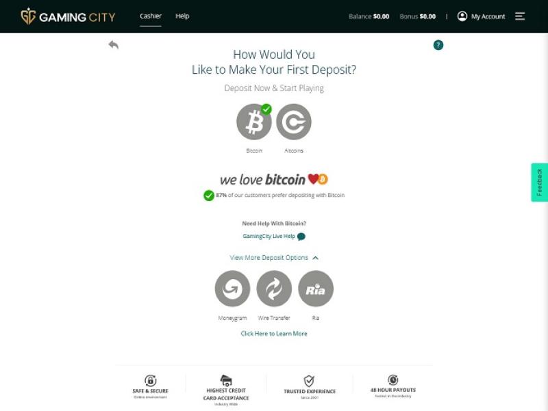 كما ذكرنا سابقًا، هذا كازينو على الإنترنت للعملات المشفرة، ويدعم العملات المشفرة الشائعة وطرق الدفع المشفرة للإيداع والسحب . كما يمكن للمقامرين الاعتماد على خيارات مثل موني جرام ، والتحويل البنكي، وبطاقات الخصم والائتمان.