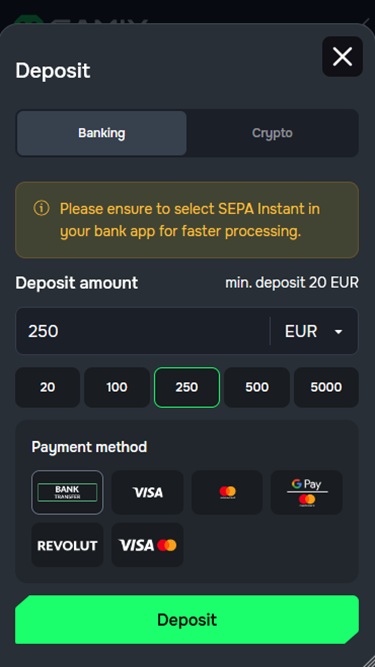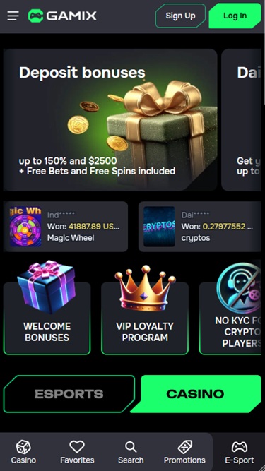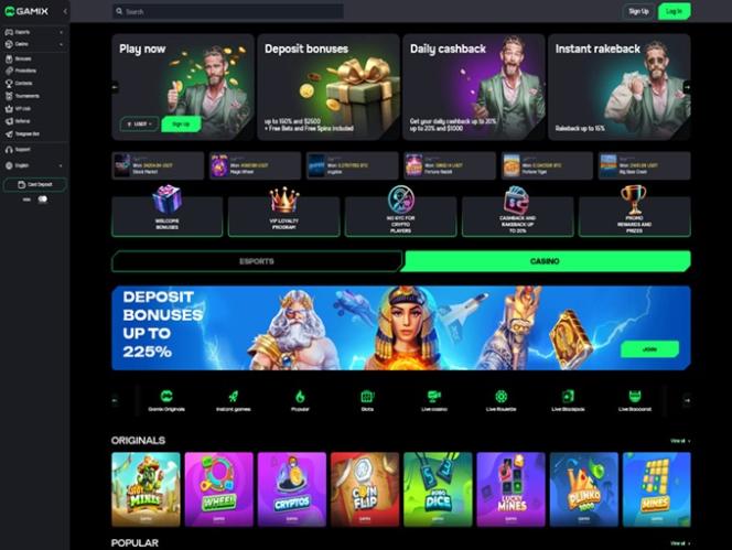 Gamix هو كازينو عبر الإنترنت يركز على العملات المشفرة حيث يمكنك إكمال عمليات تحويل الرصيد باستخدام Bitcoin و Bitcoin Cash و Dash و Dogecoin و Ethereum و Toncoin و Tether و Solana و Ripple و Litecoin و Tron .