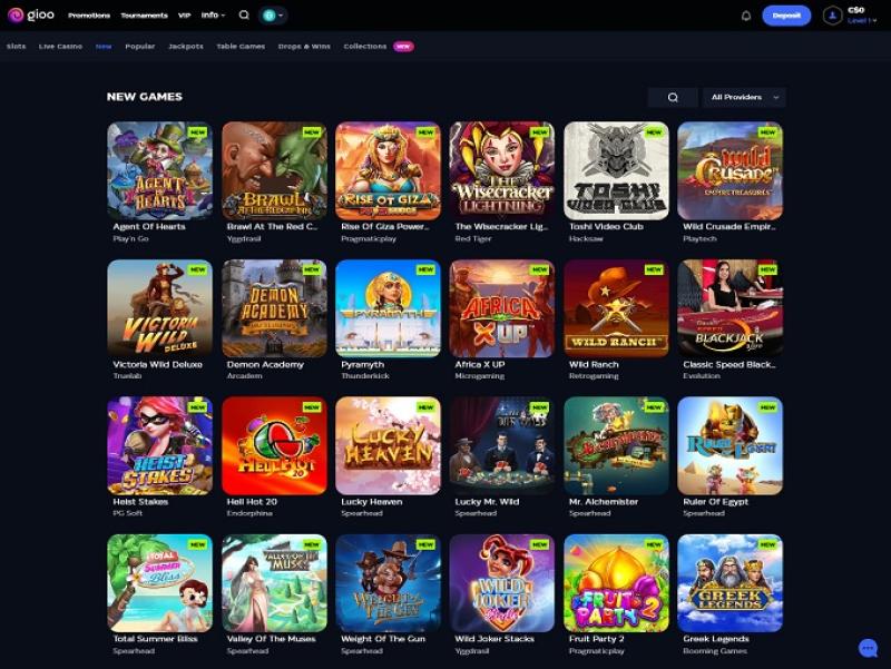 يتم تشغيل صالة الألعاب الشاملة في كازينو Gioo بواسطة محتوى من أكثر من 70 من مزودي الألعاب الأعلى تصنيفًا، بما في ذلك أمثال Evolution Gaming وBetSoft وNetEnt.