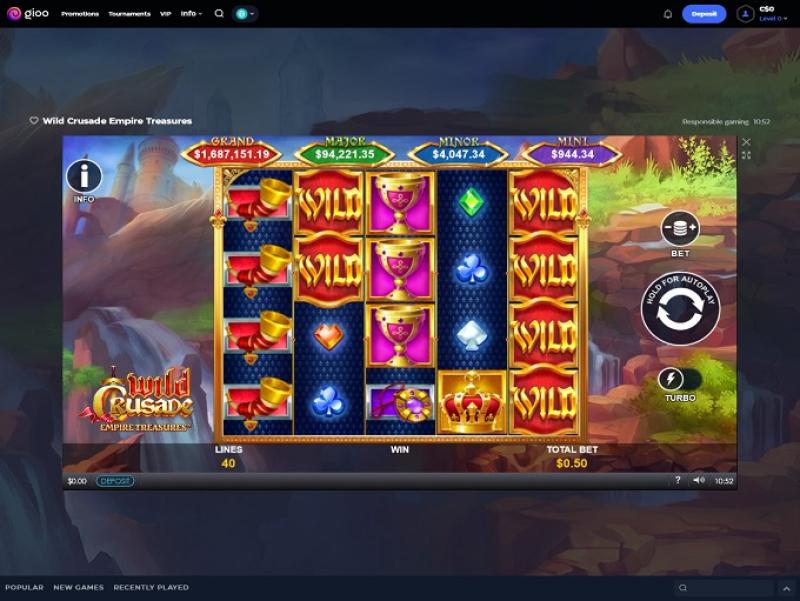 الميزة الرائعة في صالة الألعاب الخاصة بكازينو Gioo هي أن اللاعبين يمكنهم تجربة ألعاب السلوتس في وضع اللعب المجاني / اللعب من أجل المتعة قبل اختيار إنفاق أموال حقيقية.