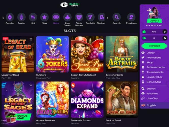 يضم كازينو GlitchSpin قائمة تضم أكثر من مئة شركة برمجيات كازينو، وهو أمرٌ شائعٌ في قطاع المقامرة الإلكترونية. تسعى جميع الكازينوهات الإلكترونية الموثوقة إلى التميز عن غيرها، وهذا ليس بالأمر السهل في بيئة تنافسية كبيئة ألعاب الإنترنت. الشراكة مع عدد كبير من العلامات التجارية المرموقة تُضفي التنوع وتُتيح فرصةً لجذب الجمهور من خلال مجموعةٍ ضخمة من الألعاب عالية الجودة.