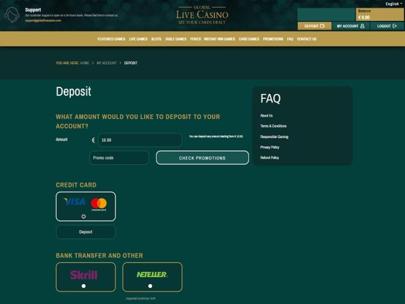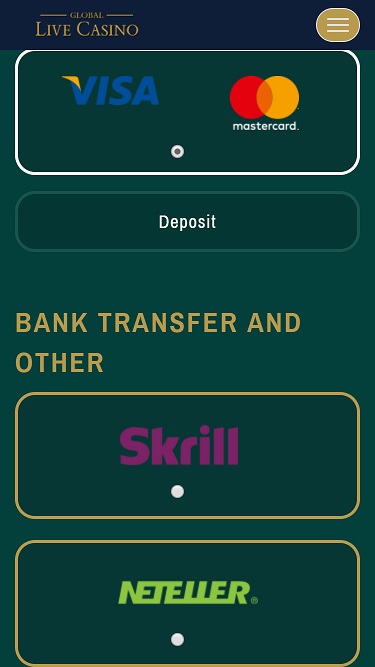 خيارات الخدمات المصرفية في GlobalLiveCasino