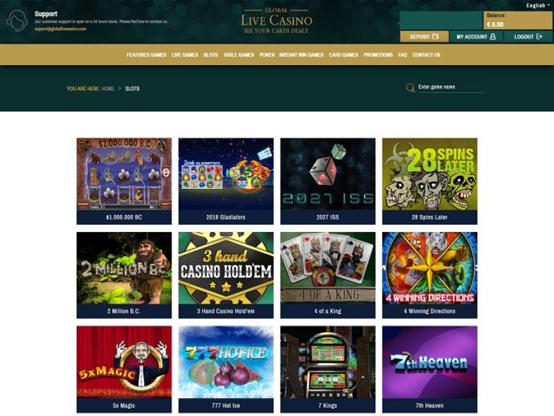 يعمل كازينو Global Live Casino بواسطة Microgaming, BetSoft, Play'n GO, Quickspin, Endorphina, PlayPearls, Red Tiger Gaming, Spinomenal, Inbet Games, Fugaso, Games Global and We Are Casino ، وتُقدم ألعابه عبر منصة ويب للعب الفوري، ما يتيح لك اللعب عبر متصفح الإنترنت. كما يتوفر كازينو جوال لمن يرغبون في اللعب على الهواتف الذكية والأجهزة اللوحية.