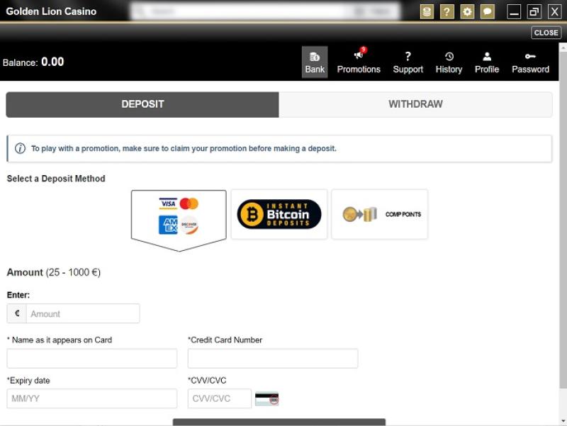 خيارات الخدمات المصرفية في Golden Lion Casino