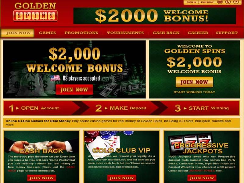 كازينو جولدن سبينز هو موقع مراهنات إلكتروني افتُتح عام ٢٠١٥. الكازينو مرخص من كوراساو، ويخدم المقامرين من جميع أنحاء العالم، بما في ذلك الولايات المتحدة. وقد تعرض الكازينو لانتقادات من اللاعبين بسبب متطلبات الرهان العالية على المكافآت، ولكنه يحظى بالثناء لمكتبة ألعابه الممتازة وبطولاته المجانية.معلومات الكازينو