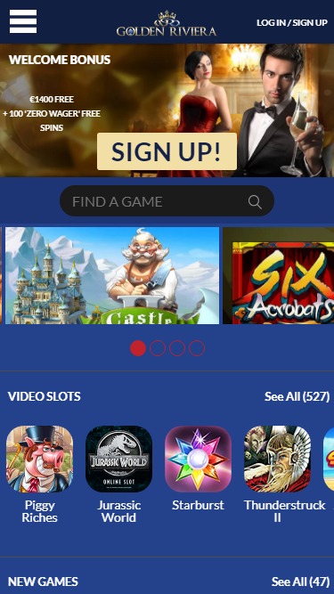 كازينو جولدن ريفييرا هو موقع مراهنات إلكتروني تأسس عام ٢٠٠٠، وتملكه وتديره شركة فيغاس بارتنر لاونج. اكتسب الكازينو شعبية واسعة على مر السنين، حيث استمتع اللاعبون بمكتبة ألعاب جولدن ريفييرا، وخدماته الممتازة، ومعاملاته المصرفية السريعة.